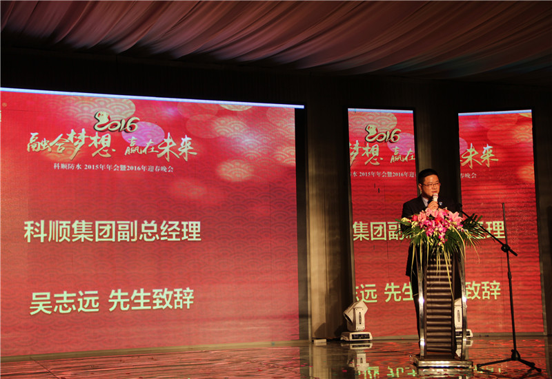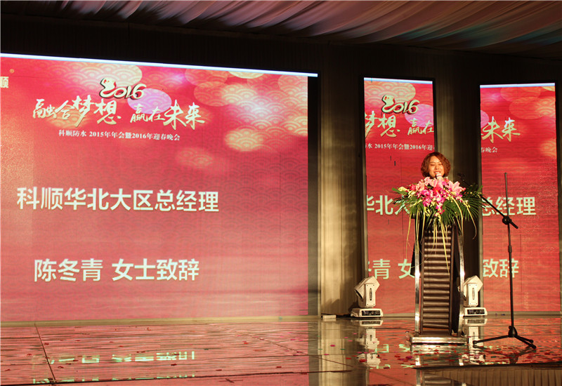 融合梦想,赢在未来!欢庆的脚步已经迈入华北大区,1月22日,好博(中国)防水华北大区2016年迎新春晚会在北京市大兴区黄村镇日月星辰酒店圆满落幕。好博(中国)防水董事长陈伟忠、副总经理吴志远、华北大区总经理陈冬青、平谷厂厂长蒋朝阳等领导,与华北大区及各办事处代表近250名好博(中国)同仁共同见证和分享了这个欢乐、美好的盛会。