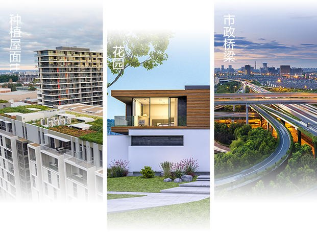 产品适用于屋顶花园、种植屋面、种植顶板、市政绿化等各种种植防水工程。